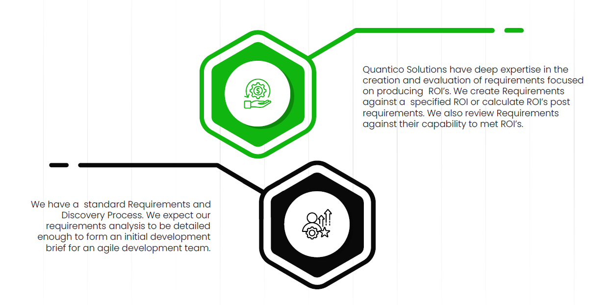 • Quantico Solutions have a highly experienced business and technical team that undertake a multi-stage review process; from technology solutions through to delivery and completion we can also incorporating vendor selection. The teams focus on Automations and the steps to achieving them. Everything is predicated on the outcome with a robust and rigorous benefit quantification against pre-agreed financial metrics at heart of each project.